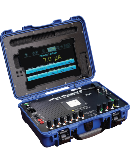 vPad-ES provides basic electrical safety testing in a new, rich graphical environment using an Android tablet. Testing can be done following the requirements of IEC 60601 or AAMI-ES1 standards. Operated through a 10.1″ Android tablet, intuitive user interface, a 25-point physical inspection checklist, and the ability to create test records on the go, running electrical safety tests has never been so easy!